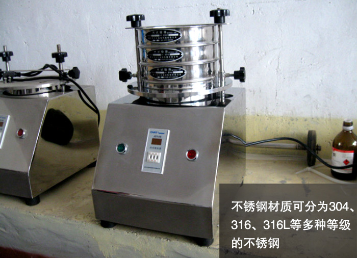 試驗篩機上部由固定黃銅螺帽、壓板、篩蓋、篩框、中篩框、篩底、等距調節桿等部件組成,所有部件均是選用優質不銹鋼精制加工而成,而這種不銹鋼材質可分為304、316、316L等多種等級的不銹鋼,不銹鋼材質的等級不同價格也就有所不同。
