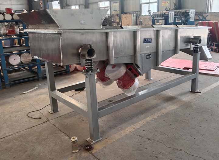 直線運動振動篩借助振動電機產生的激振力,驅動篩箱做定向直線往復運動,以此實現物料篩分。工作時,物料從進料口均勻進入篩面,在篩箱的直線運動作用下,沿著篩面持續向前移動。篩網有1-5層可選,通常1層是簡單的除雜,2-3層篩網能將物料分為3-4個粒度等級,從而完成粗、中、細的篩分需求,4-5層篩網主要完成物料的精細化分級。通過這種直線運動主導的分級方式,可完成2-6個粒度等級的物料分離。